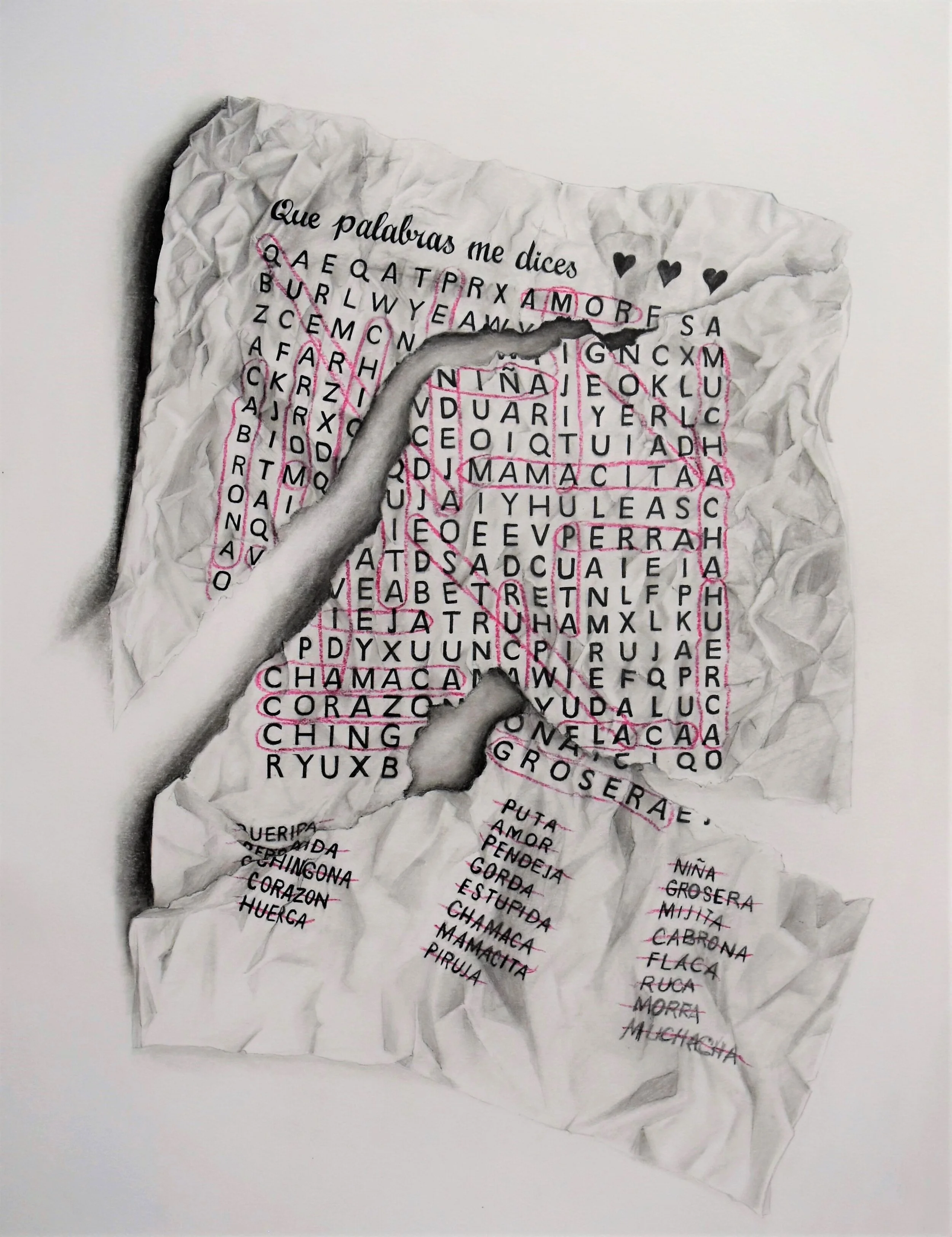 Viewers were instructed by an audio recording to interact with the word search dress worn by the performer. The words they were meant find are words that have typically been said to women in hispanic culture.
