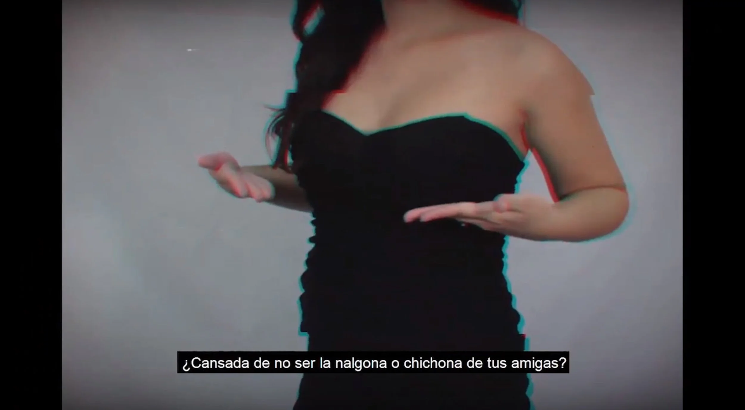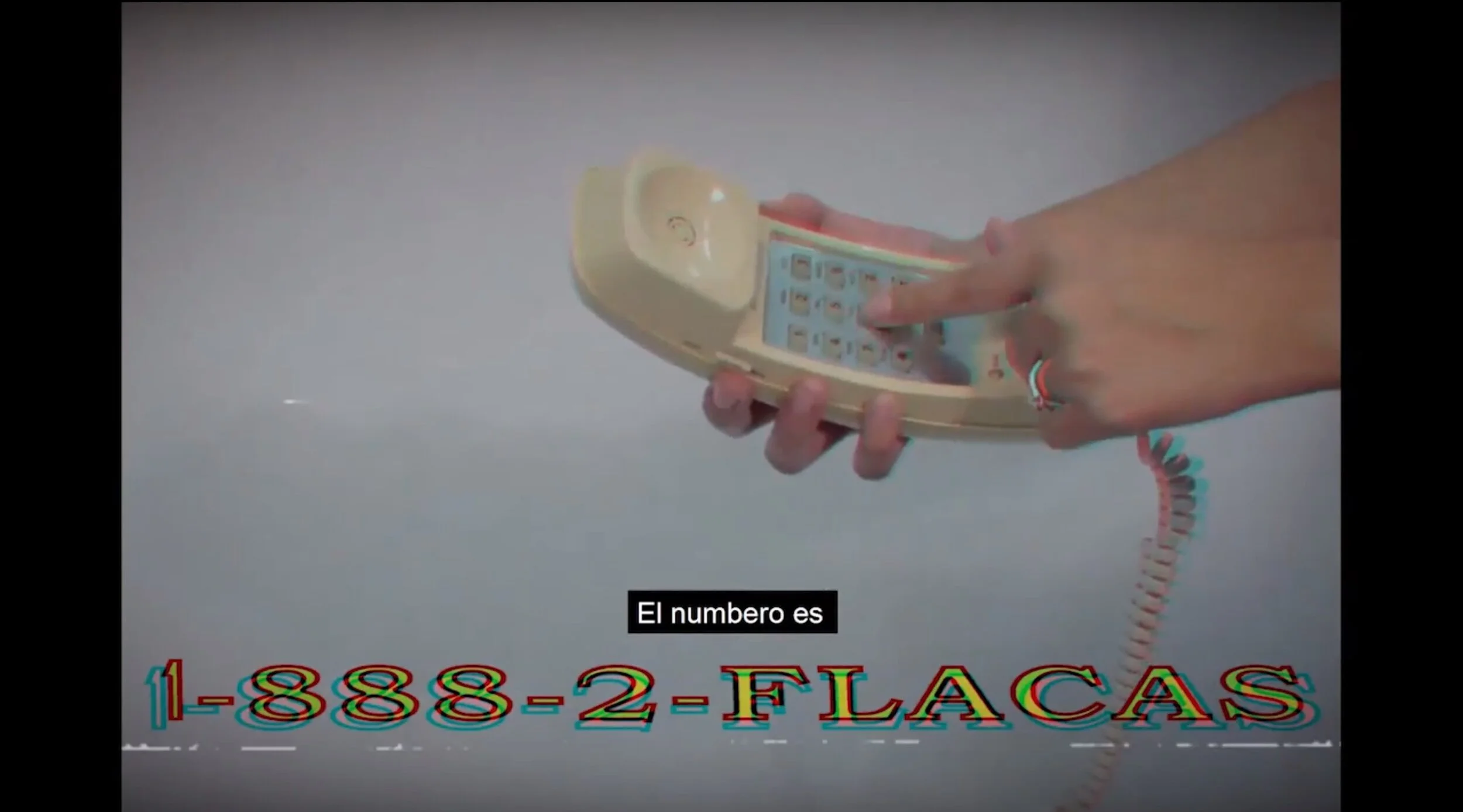 "1-888-2-Flacas" consist of Mexican-American artists Sonya Marie Sky and Gabi Magaly who are both based in Texas. This video is meant to be a parody of Mexican infomercials that promote products to enhance certain desirable female attributes.